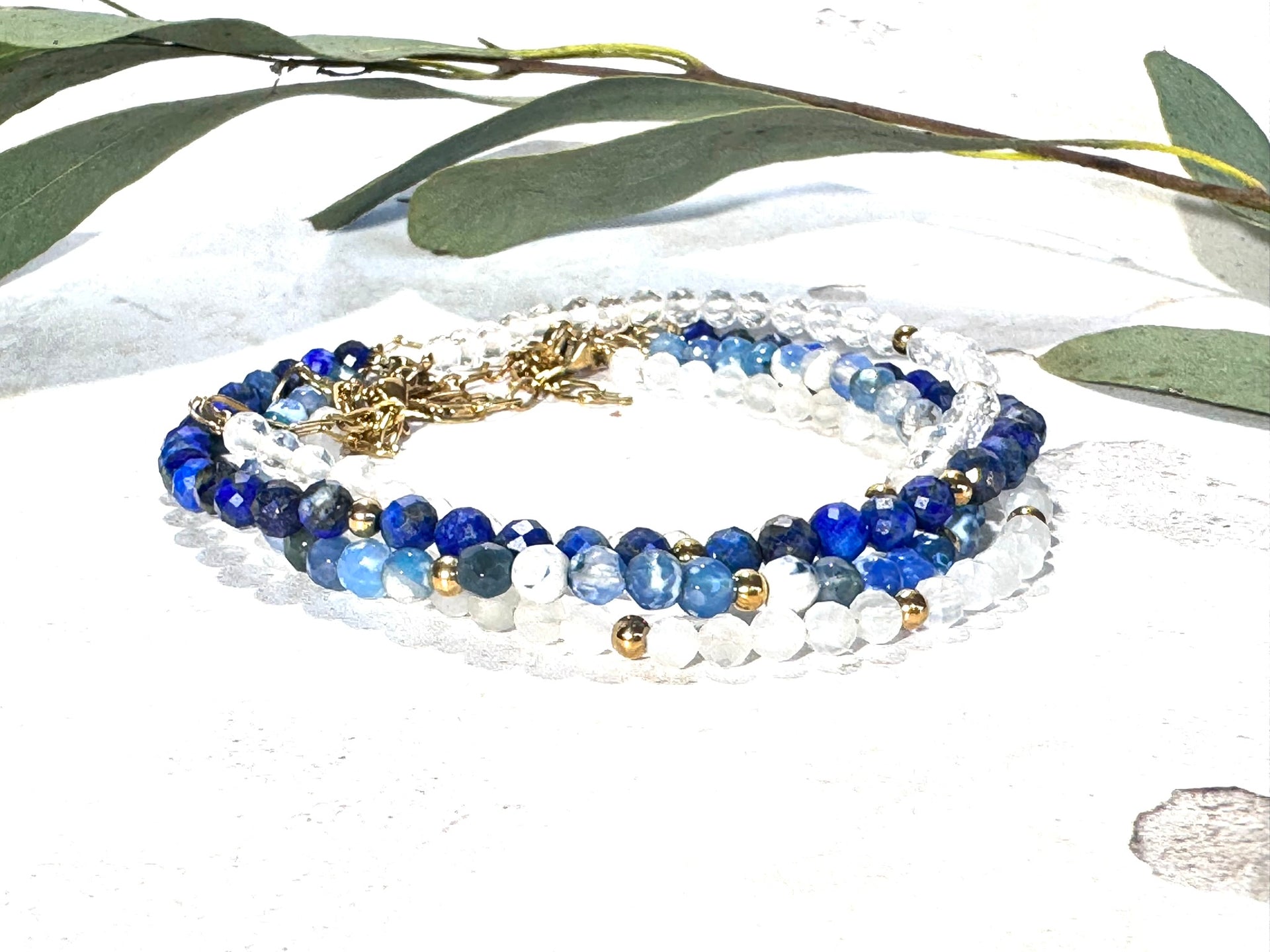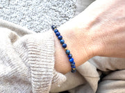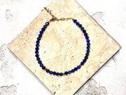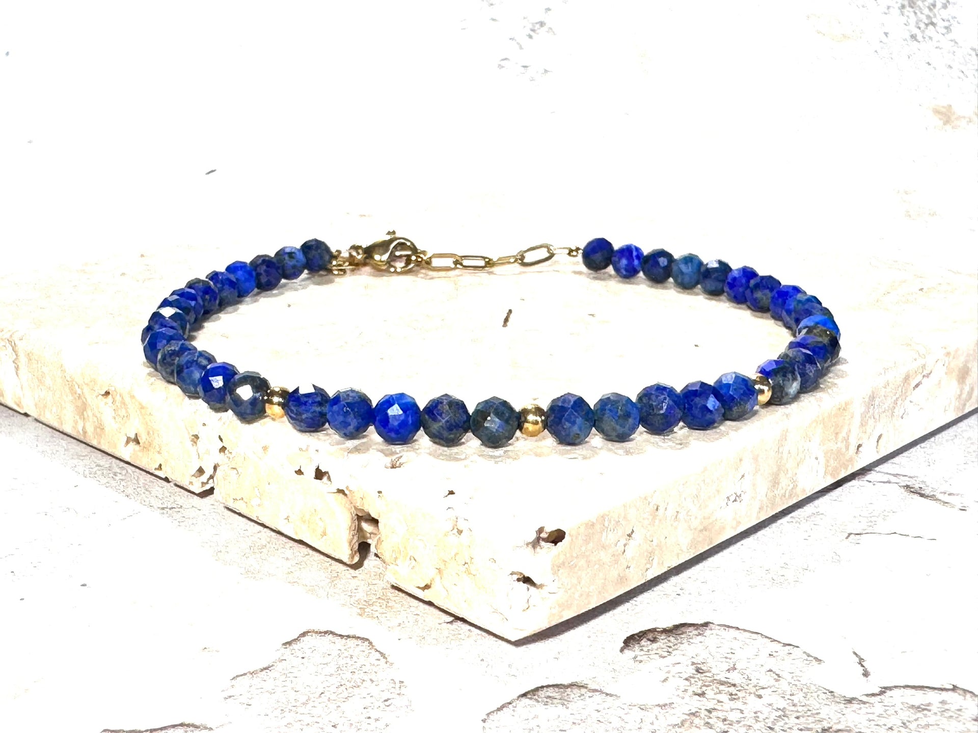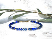 Lapis Lazuli Dainty Crystal Gemstone Bracelet, a true embodiment of elegance and natural beauty. Handcrafted with care in Surrey, UK, this bracelet features real, natural Lapis Lazuli gemstones in a gorgeous rich blue hues. The small 4mm faceted beads shimmer delicately, adding a touch of refined sparkle to your wrist.