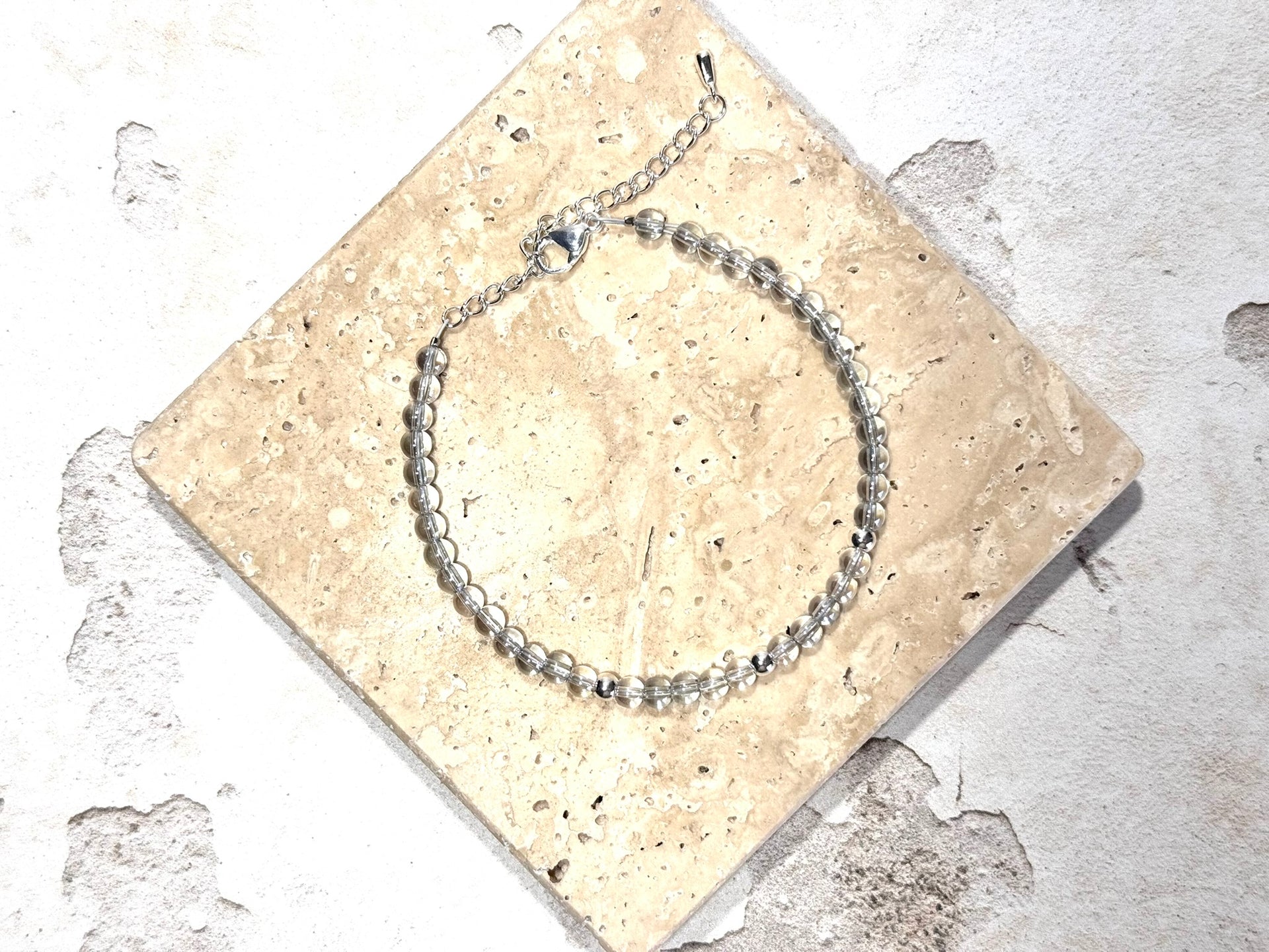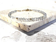 Introducing our stunning Labradorite Dainty Crystal Gemstone Bracelet, a true embodiment of elegance and natural beauty. Handcrafted with care in Surrey, UK, this bracelet features real, natural Labradorite gemstones in a gorgeous soft grey hues. The small 4mm faceted beads shimmer delicately, adding a touch of refined sparkle to your wrist.