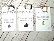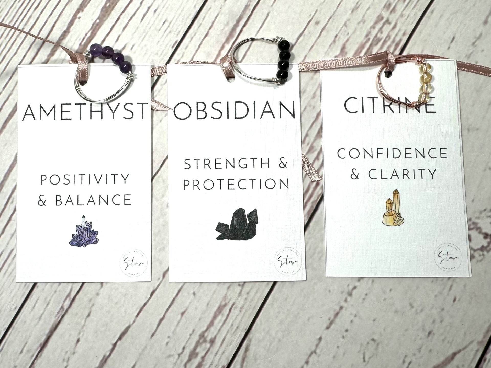 There are a variety of crystals to choose from, each ring will come with a little card describing the crystal you have chosen: