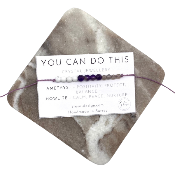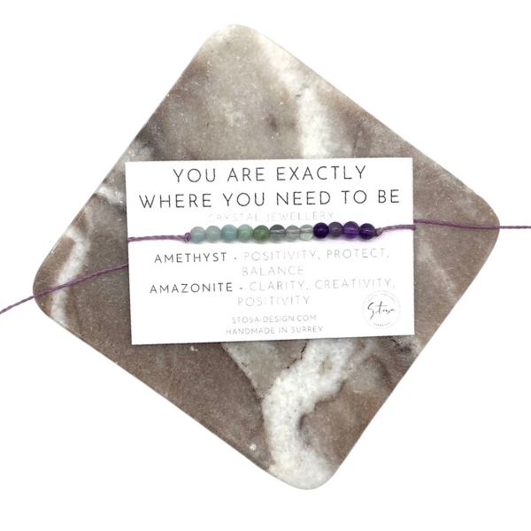 - You Are Exactly Where You Need To Be with Amethyst (positivity, protect, balance) and Amazonite (clarity, creativity, positivity)