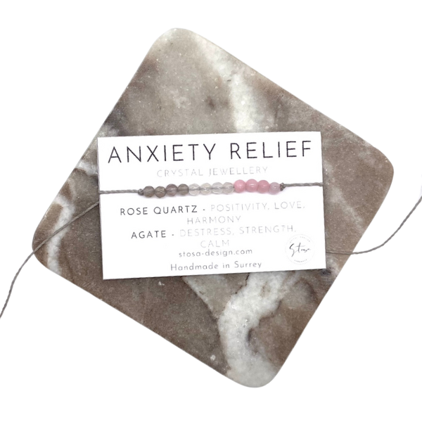 - Anxiety Relief with Rose Quartz (positivity, love, harmony) and Agates (de-stress, strength, calm)