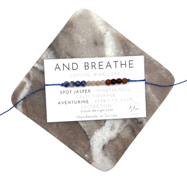 - And Breathe with Blue Spot Jasper (mindfulness, calm, courage) and Aventurine (stability, luck, protection)