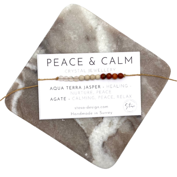 - Peace and Calm with Aqua Terra Jasper (healing, nurture, peace) and Agate (calming, peace, relax)