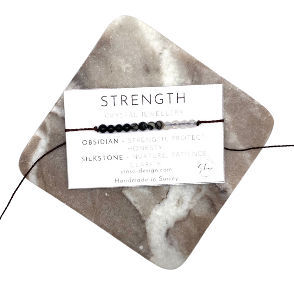 - Strength with Obsidian (strength, protect, honesty) and Silkstone (nurture, patience, clarity)