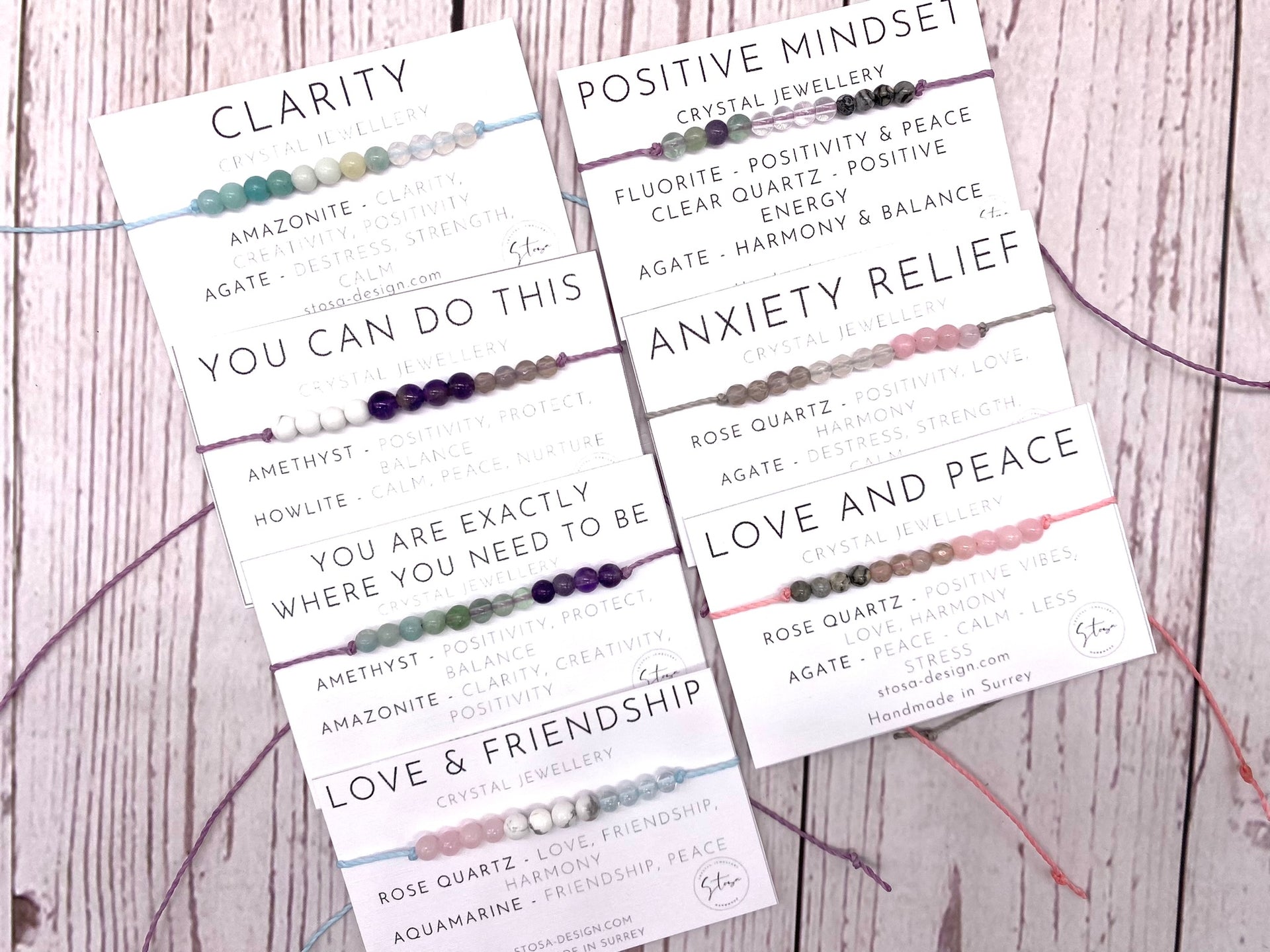 - Positive Mindset with Fluorite (positivity and peace), Clear Quartz (Positive energy) and Agate (Harmony and balance)