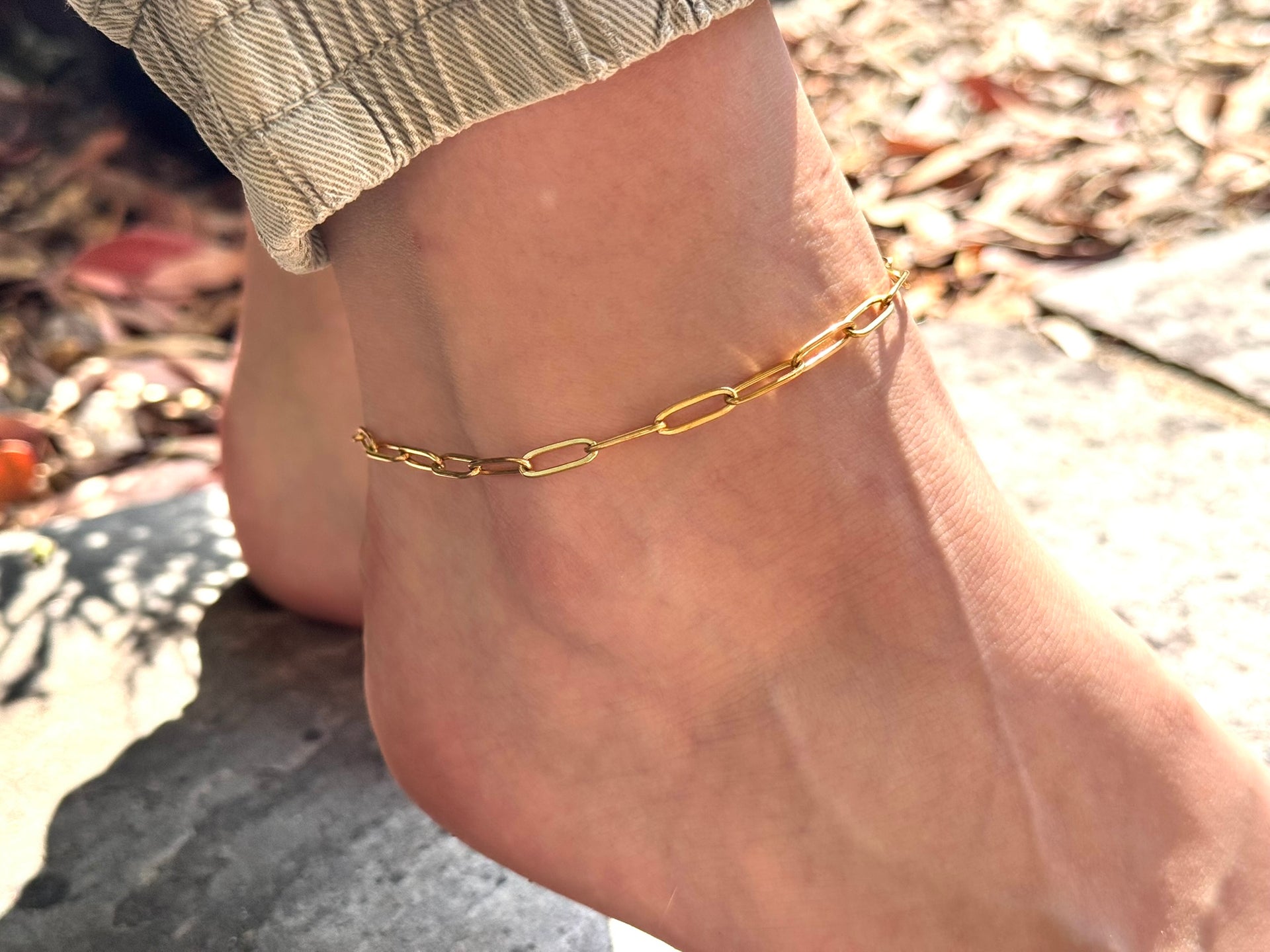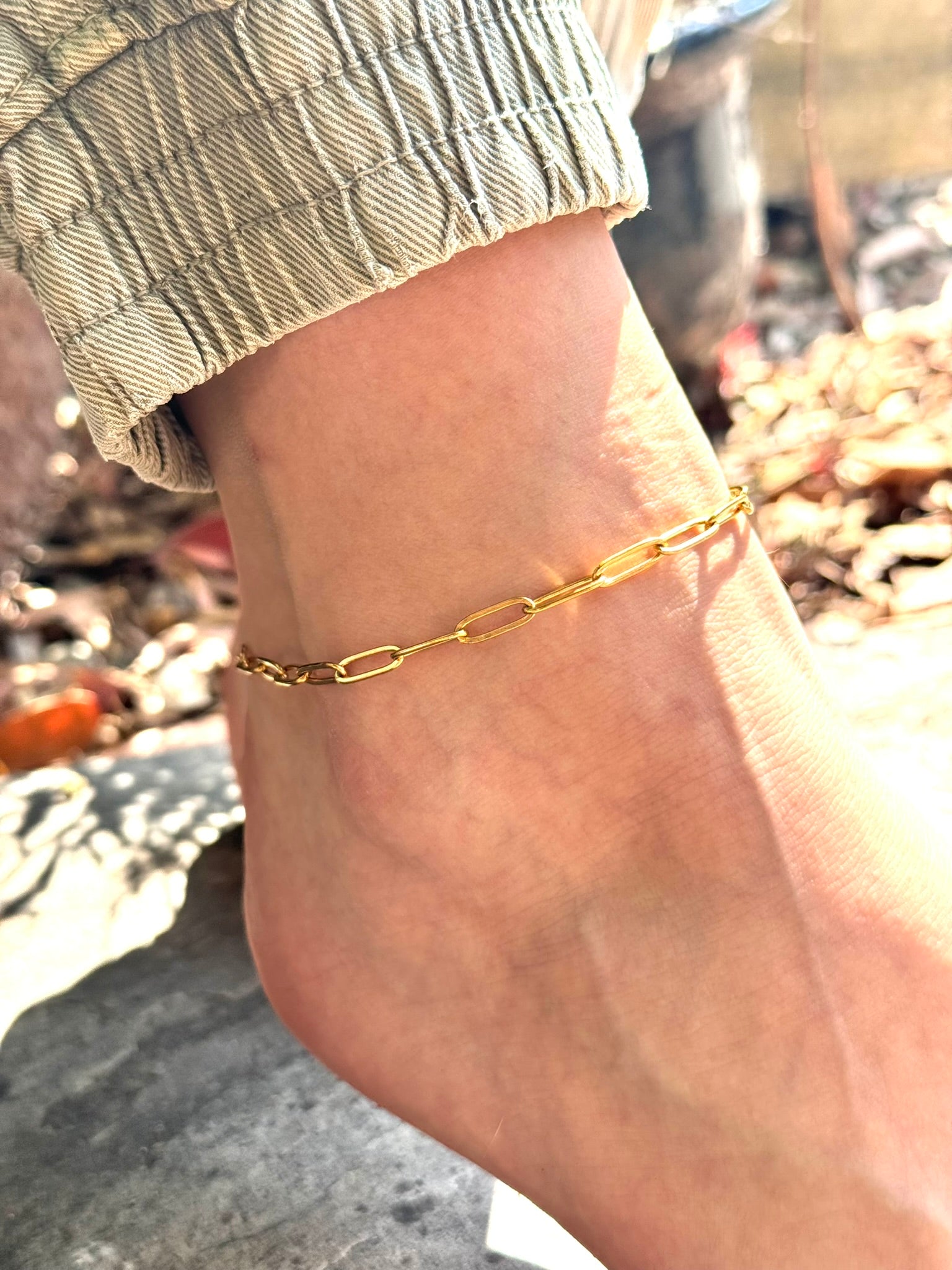 Gold Paperclip Anklet with Anti Tarnish Stainless Steel