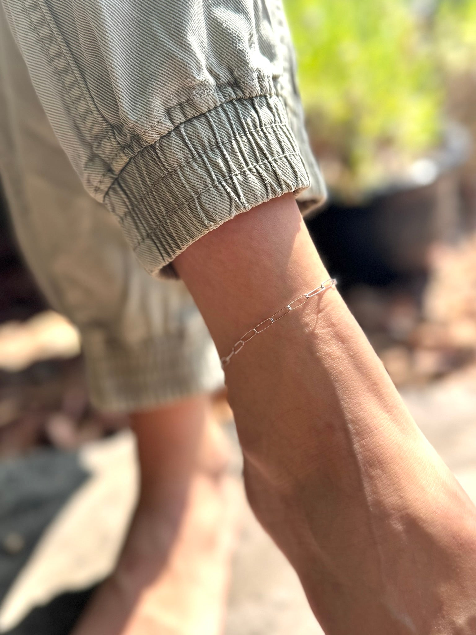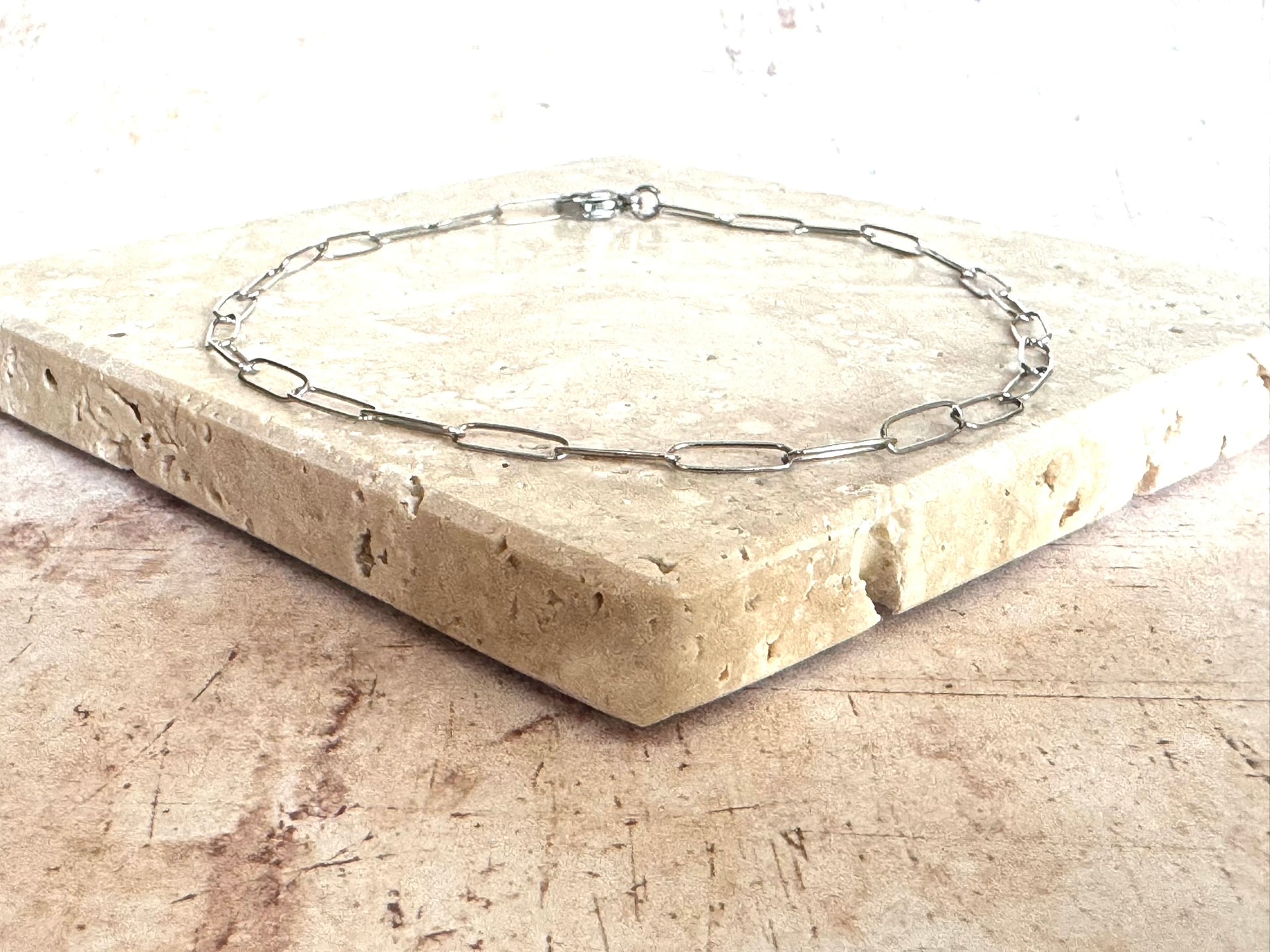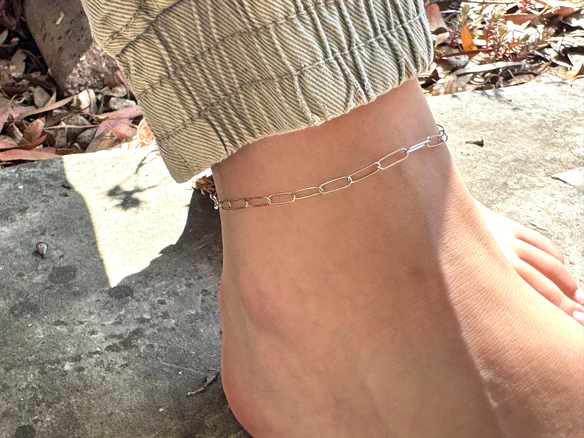 Silver Dainty Paperclip Anklet with Anti Tarnish Stainless Steel