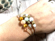 The main crystal is 8mm wide, and then next to it sit two 6mm wooden beads, these are either Rosewood or Sandalwood and you can add a few drops of essential oil to these beads (this is detailed on the card it comes with), and you can use them as oil diffusing bracelets which are gorgeous!
