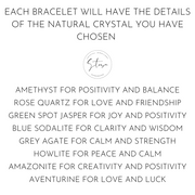 I also hand wrap them in tissue and they arrive in a lovely printed envelope, ready to give. Each bracelet will also have a little sticker with the gemstones description on it.