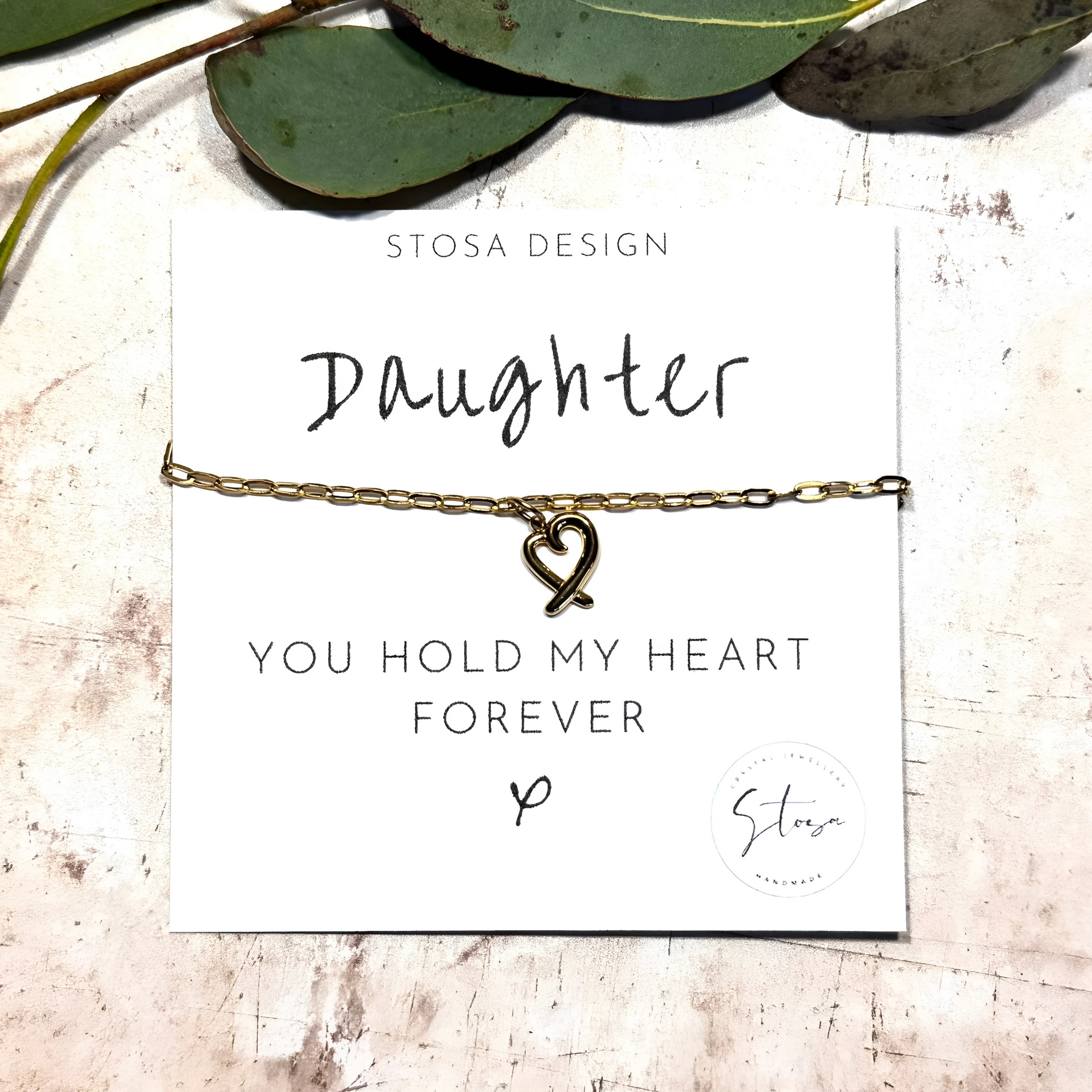 Daughter Gift Bracelet - Heart Charm Bracelet in Gold or Silver - Anti Tarnish and Waterproof Jewellery Handmade by Stosa Design