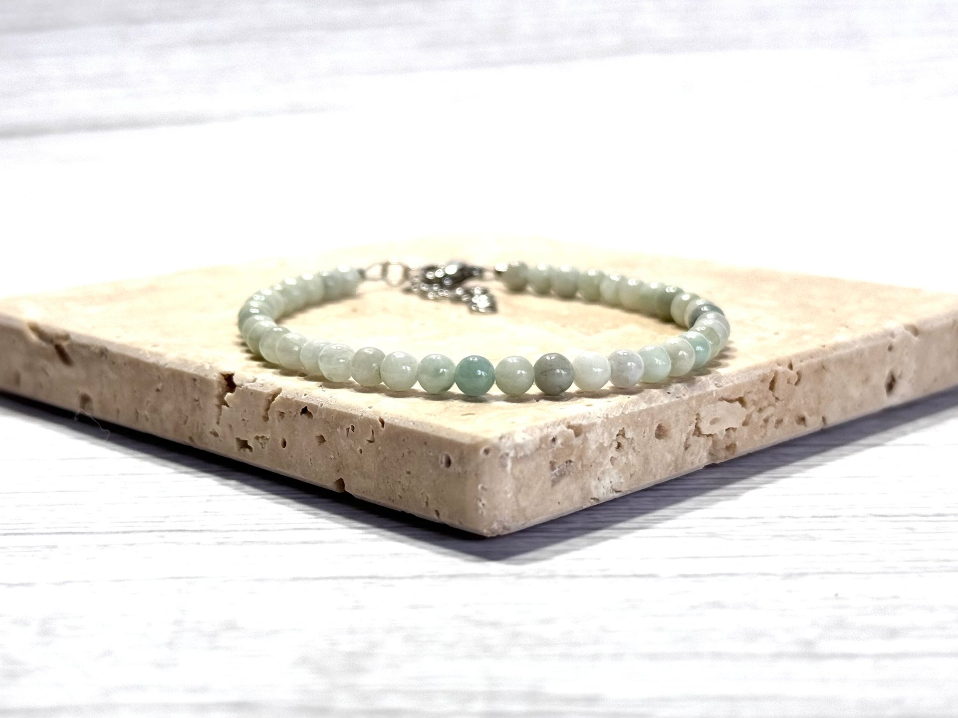 Green Jade Dainty Crystal Gemstone Bracelet, a true embodiment of elegance and natural beauty. Handcrafted with care in Surrey, UK, this bracelet features real, natural Green Jade gemstones in a gorgeous soft pale green hues. The small 4mm faceted beads shimmer delicately, adding a touch of refined sparkle to your wrist.